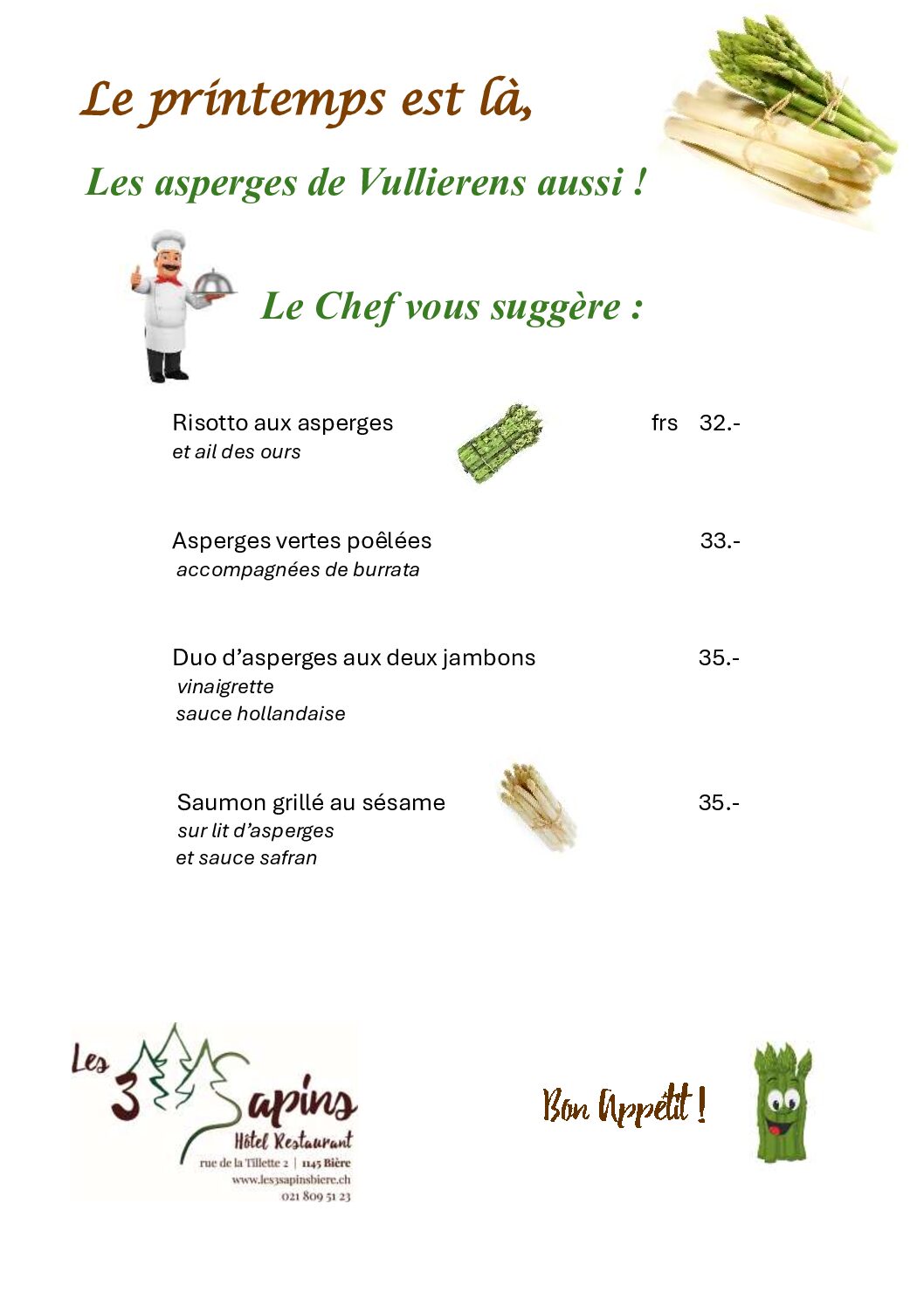 Au menu cette semaine aux 3 sapins